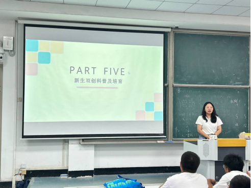 9月23日,新生召开第一次年级大会,辅导员蒋锐向新生讲解了学生手册,同时从什么是双创、双创的重要性、怎么备赛双创三个方面进行了新生双创科普及培育教育,并从文明上网、消防安全、人身安全、财产安全、饮食安全、交通安全六个方面对新生进行了安全教育。