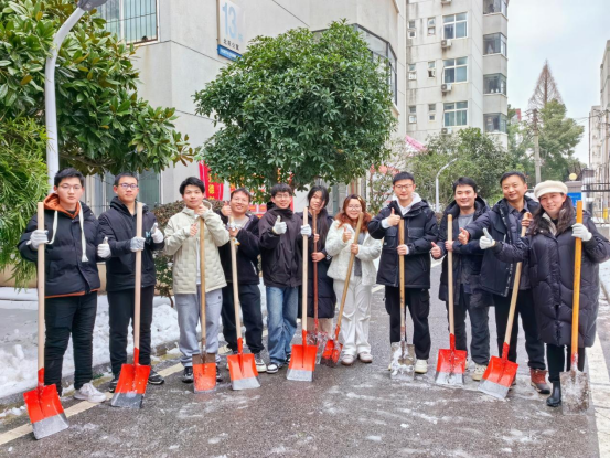 在师生默契的配合下、如火如荼的劳动下,一小时左右,原本被积雪覆盖的学生社区主干道和宿舍生活区等关键位置,变得干净清爽。师生们可以自由行走,无需担心滑倒受伤。