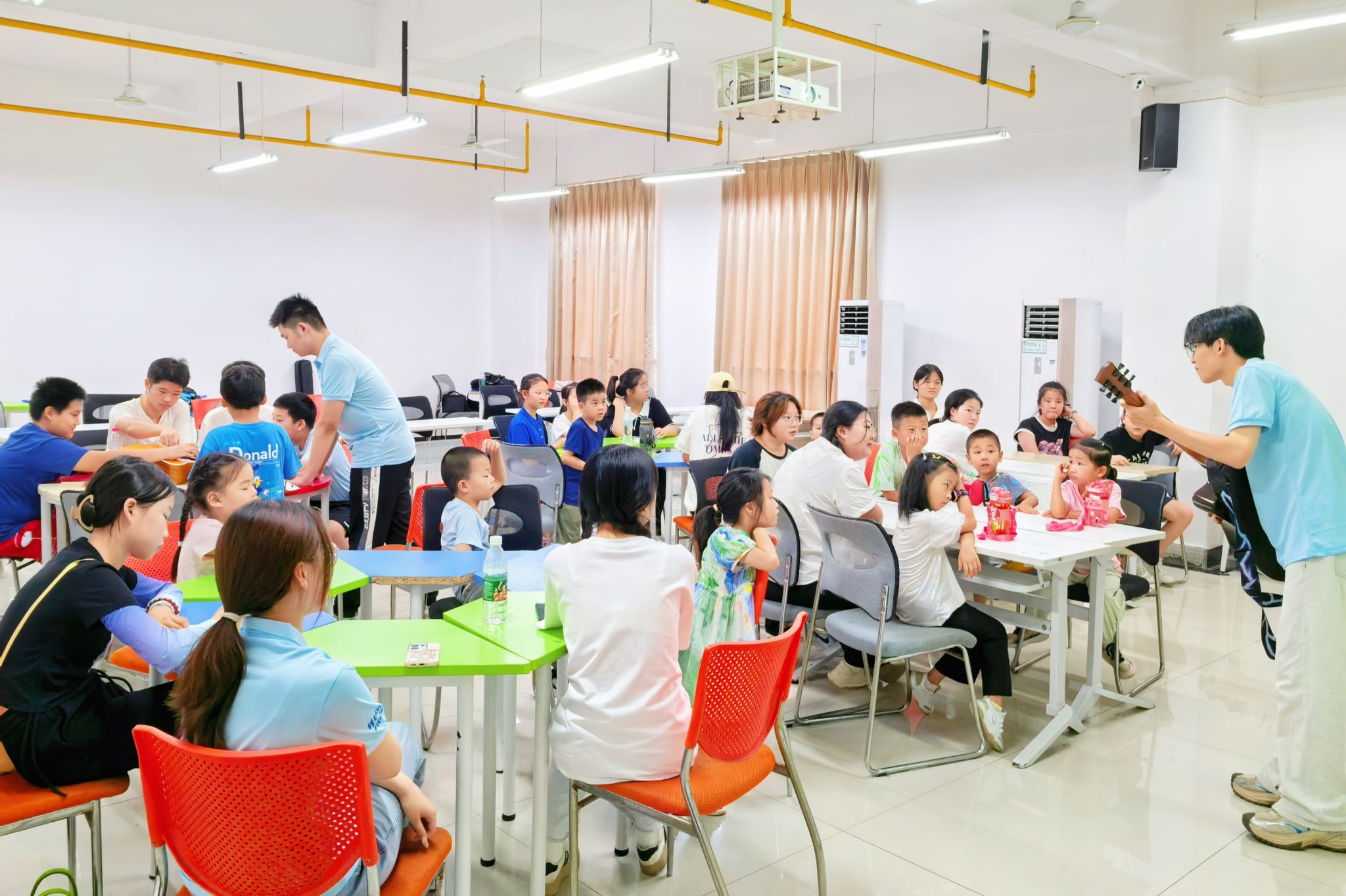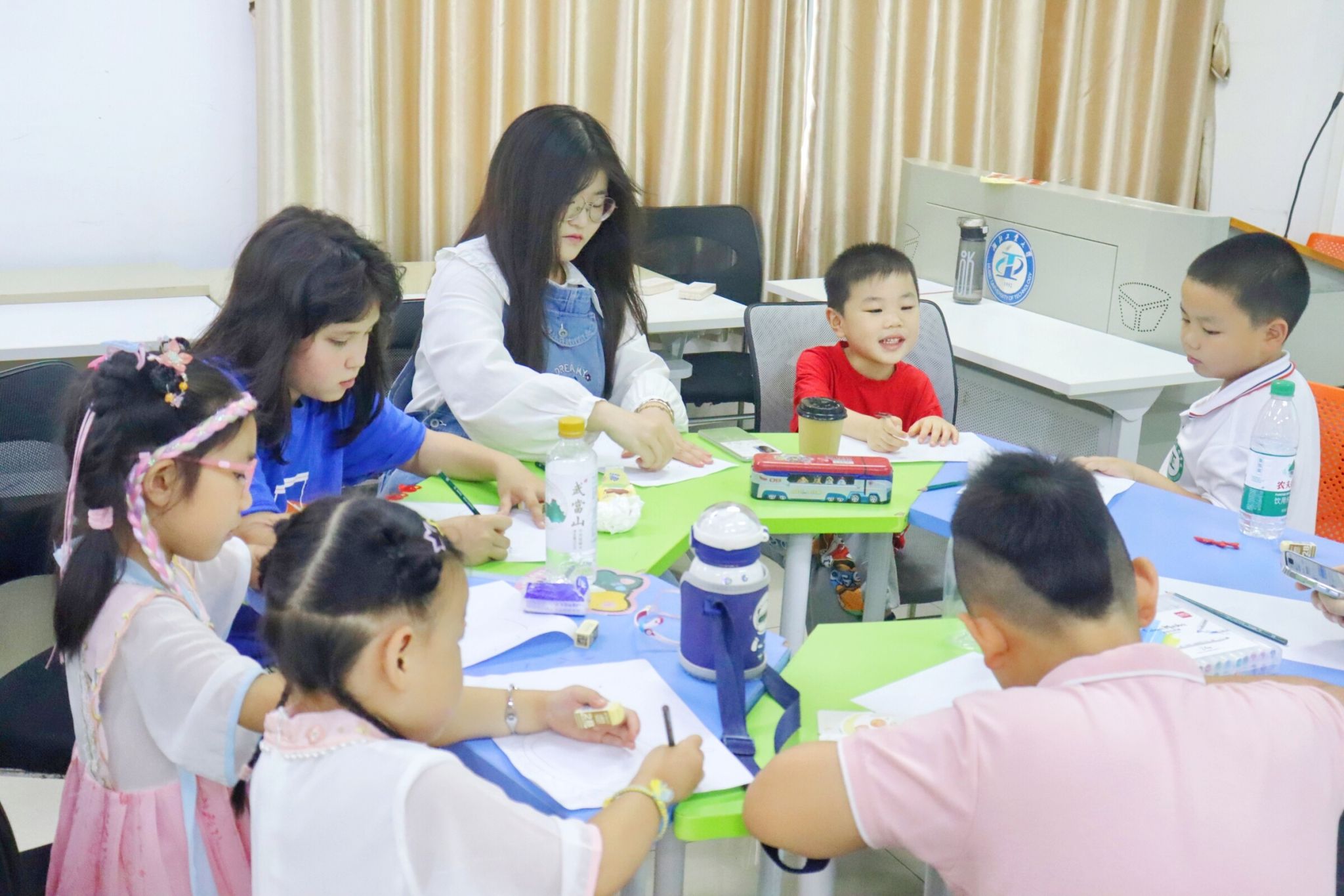 由湖北工业大学职业技术师范学院青教赛获奖教师、校园十佳歌手冠军、曾获省级优秀社会实践团队的“炬才”服务队大学生志愿者等师生代表组成的托管团队,陪小朋友们过暑假,为他们带来了“乐动心声”音乐课堂、“神笔马良”绘画课堂、“中国结、剪纸制作”传统文化课堂以及“情景剧本秀”品格塑造课堂,并依托每一次课堂,引导小朋友们讲述自己的作品创意、心得体会,以此锻炼口才。