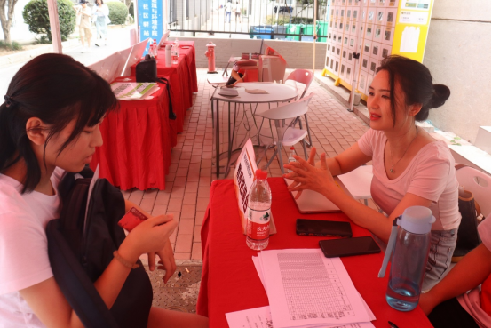 在报到现场,学院设置了教授咨询台,职师学院汪洋博士后为新生及新生家长提供咨询。