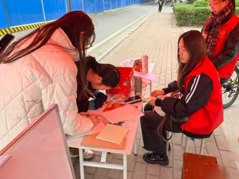 部分同学与志愿者们一起叠千纸鹤、写祝福寄语,共同表达对未来生活的期盼。