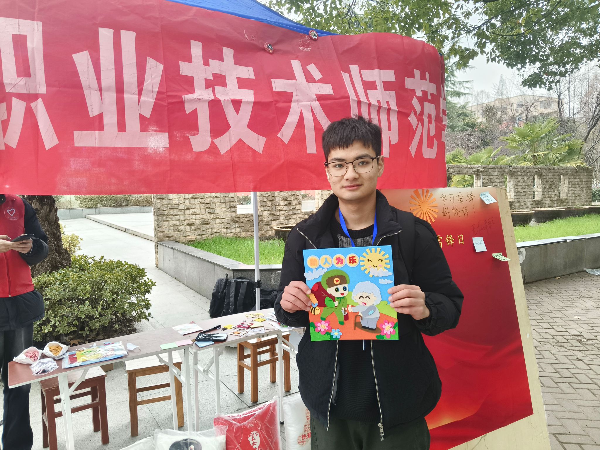 阳春三月,职业技术师范学院在中区操场开展“3·5学雷锋纪念日”主题活动,通过爱心传递、故事拼贴、创意手作等形式弘扬雷锋精神,让志愿情怀随春风浸润湖工大校园。