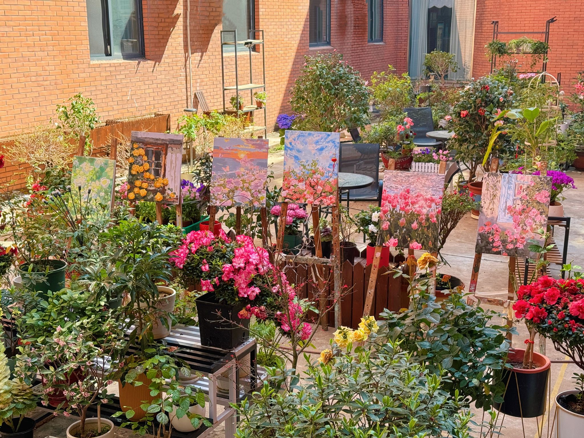 辅导员周越超介绍说,萌生想法易、实际落地难,这也更显最终呈现的美丽园区的可贵。如何根据学院园区本身的砖红色,搭配满园花色、画色?如何根据师生特长,合理分组、分工?如何让师生掌握花卉养护方法、画作绘制技巧?如何利用装扮好的园区持续开展教育教学活动,让“美”由园区表象,深入师生内里?