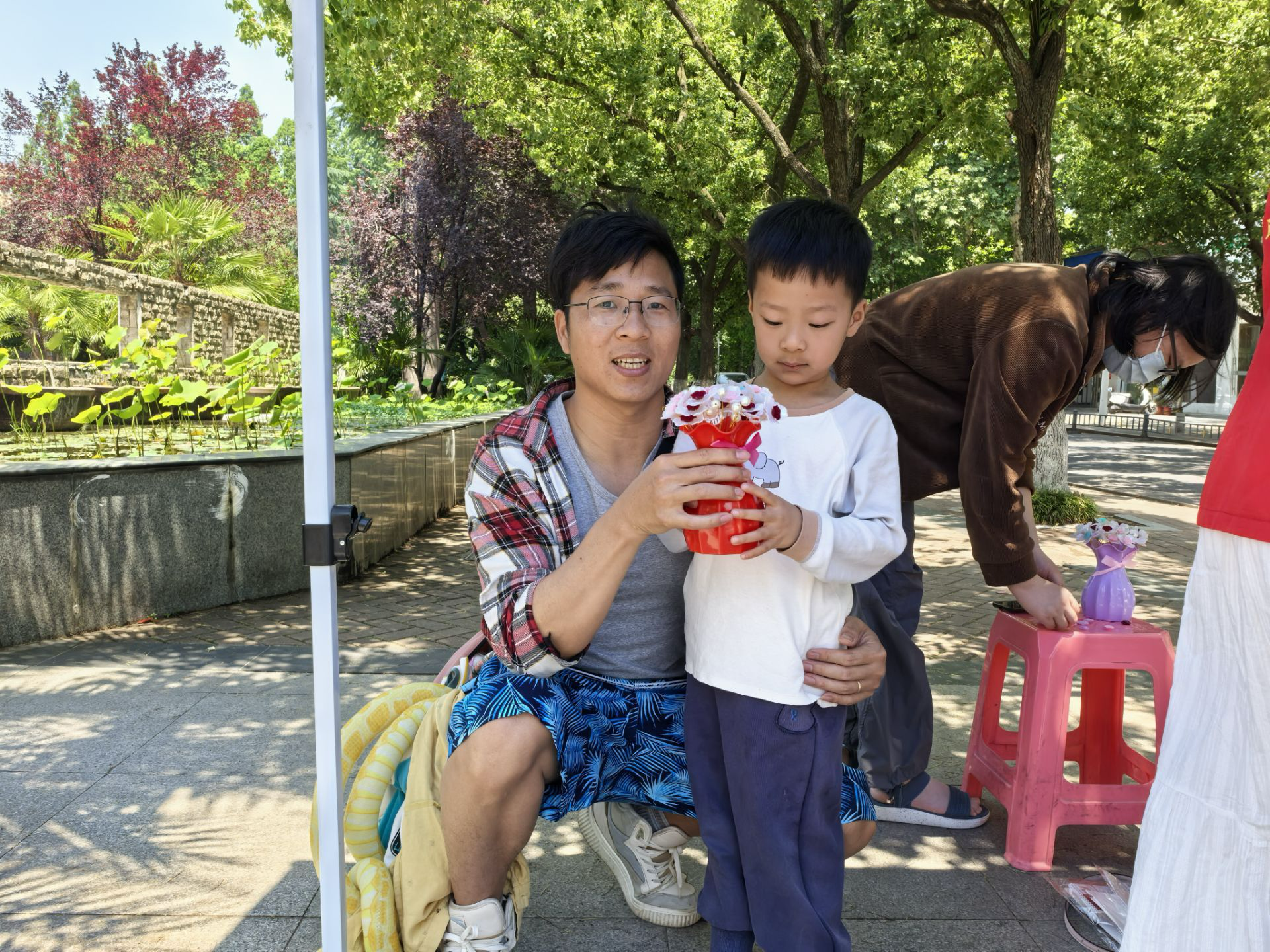 活动现场精心设置三大创意板块,在“以花为媒”环节,参与者利用仿真花、花瓶等材料亲手制作专属礼物;“妈妈,上次视频发现您多了几根白发”。这是“花语寄情”板块中的祝福短片片段。