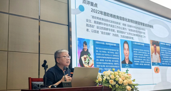 活动邀请了多位教育信息化领域的专家开展讲座报告和经验分享。原湖北省教育信息化发展中心副主任雷春就“中小学教师信息技术创新与实践活动”(EOC活动)进行了详细介绍,为与会者提供了参加该活动的详实指导。浙派名师倪俊杰老师分享了EOC活动中课堂实践和教学资源的征集要求、优秀作品案例及实用技术工具,为数字化教学创新实践提供了极具参考价值的指导。湖北省教育信息化发展中心《教育技术导刊》杂志社的邬江华主任就学术论文选题、写作要求和撰写规范进行了讲解,为教师们的学术研究和论文写作提供了深入的理论指导。武汉机电工程学校副校长周凌和武汉市仪表电子学校刘军明主任分享了各自学校的数字化转型改革与实践案例,为中职学校数字化建设提供了极具借鉴价值的经验和案例。活动最后,职业技术师范学院副院长宋庭新对活动进行了总结。