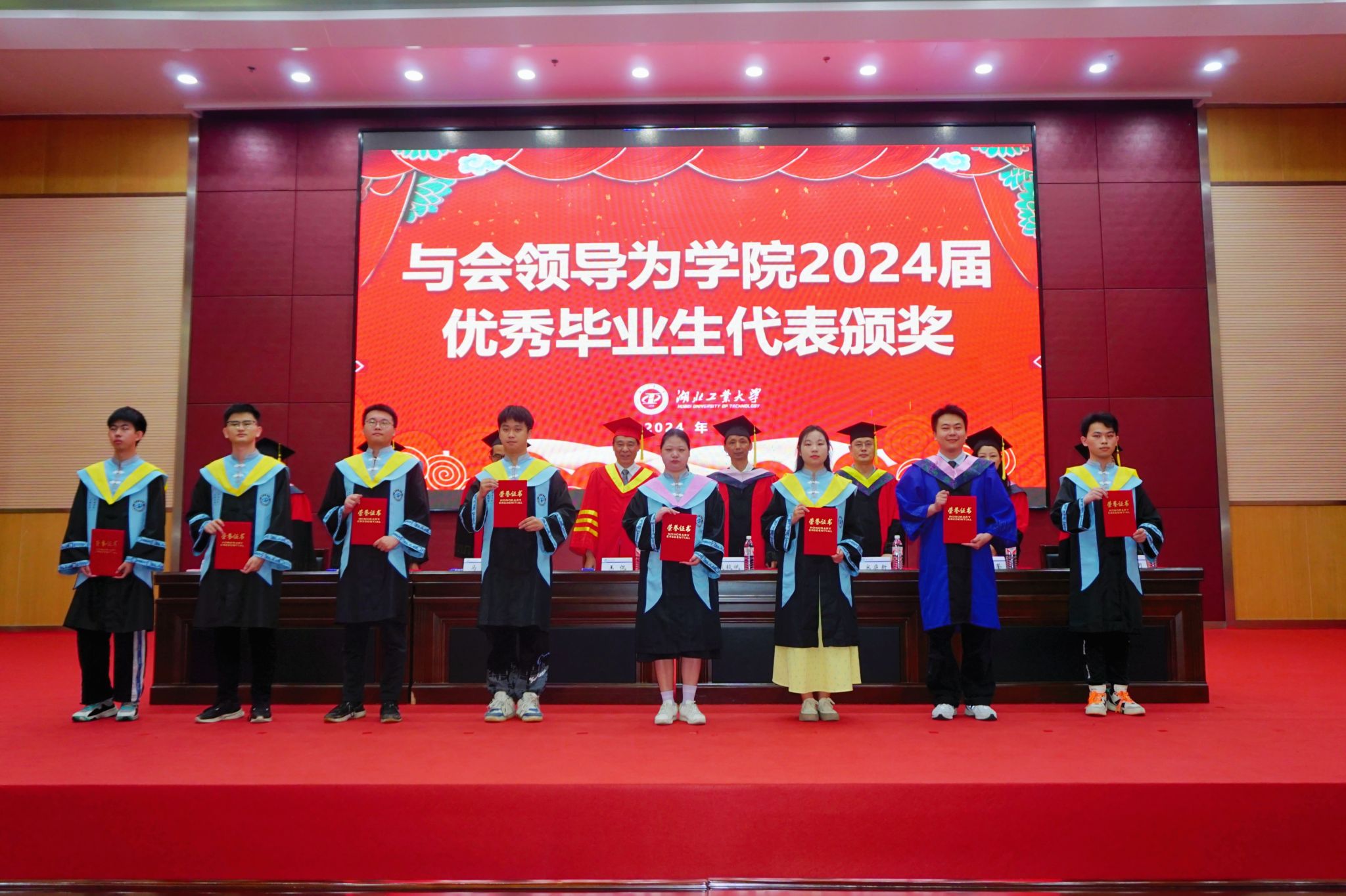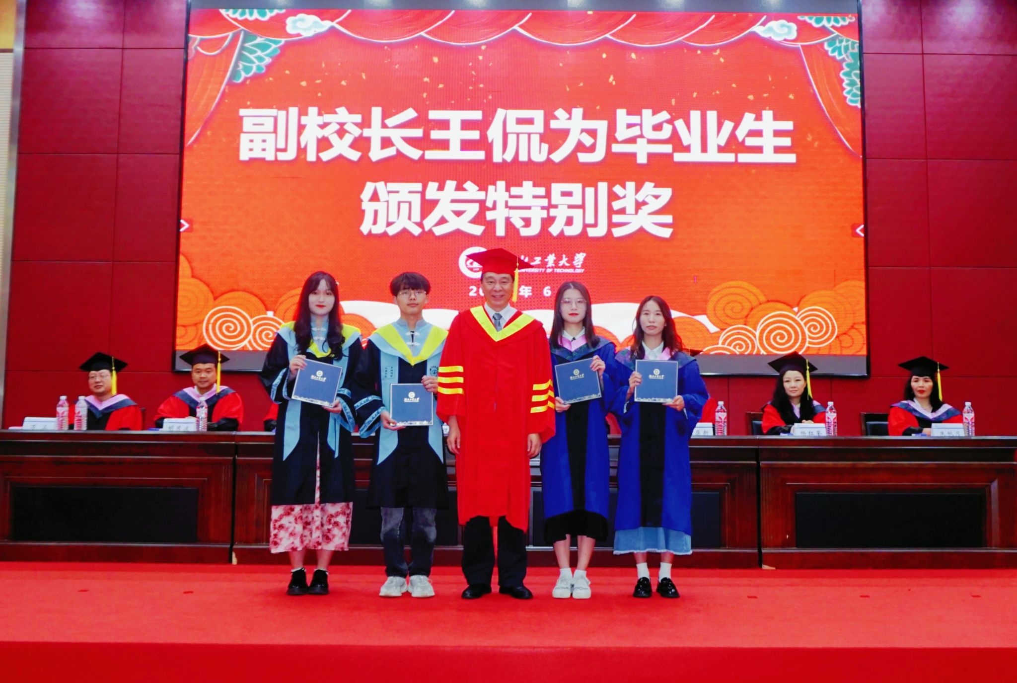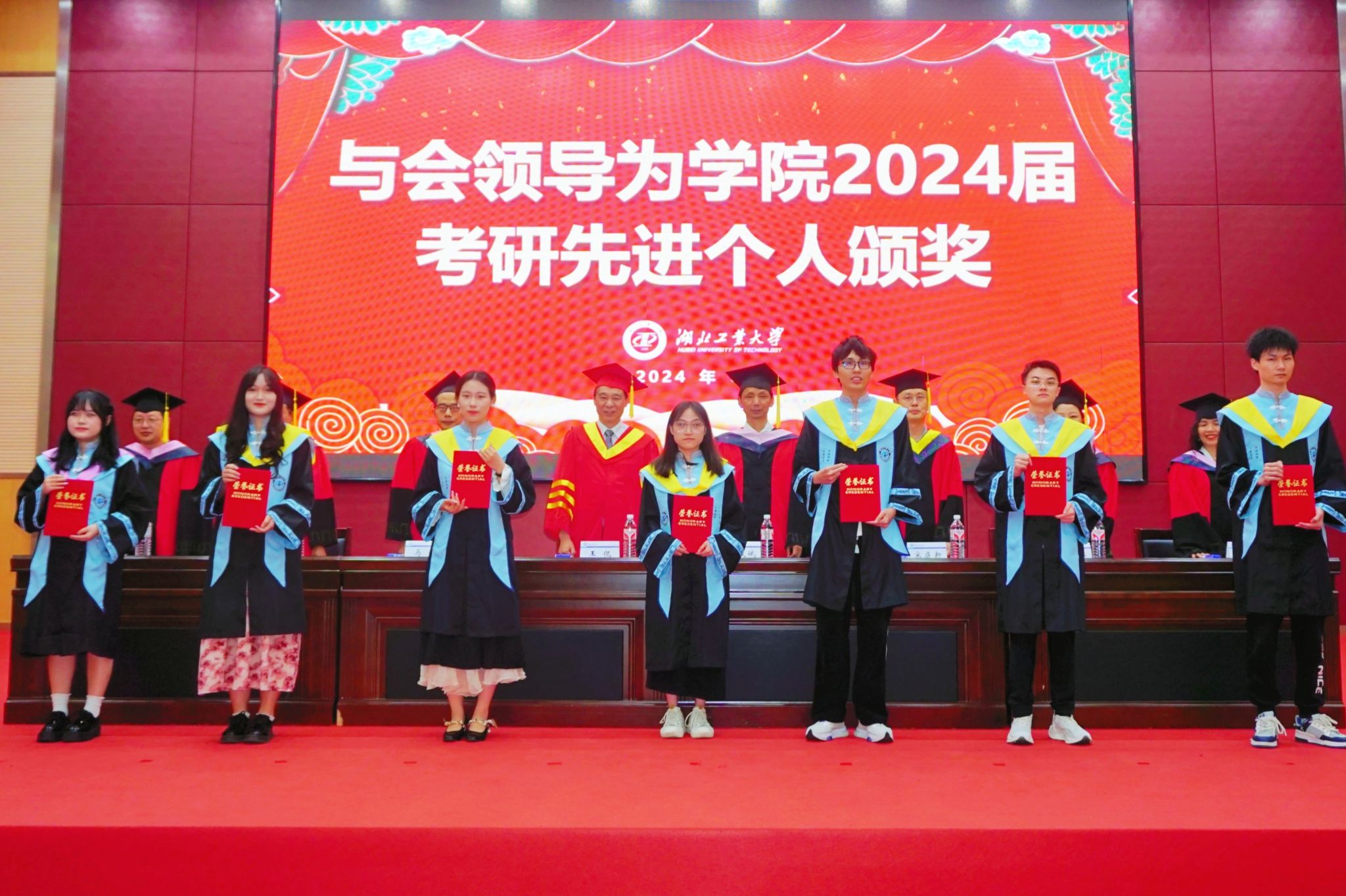 职师学院党委书记戴毅斌宣读《关于表彰职业技术师范学院2024届优秀毕业生的决定》以及《关于表彰职业技术师范学院2024届考研先进个人的决定》。王侃及职师学院领导班子成员、教授委员会成员为学院优秀毕业生、考研先进个人颁奖。