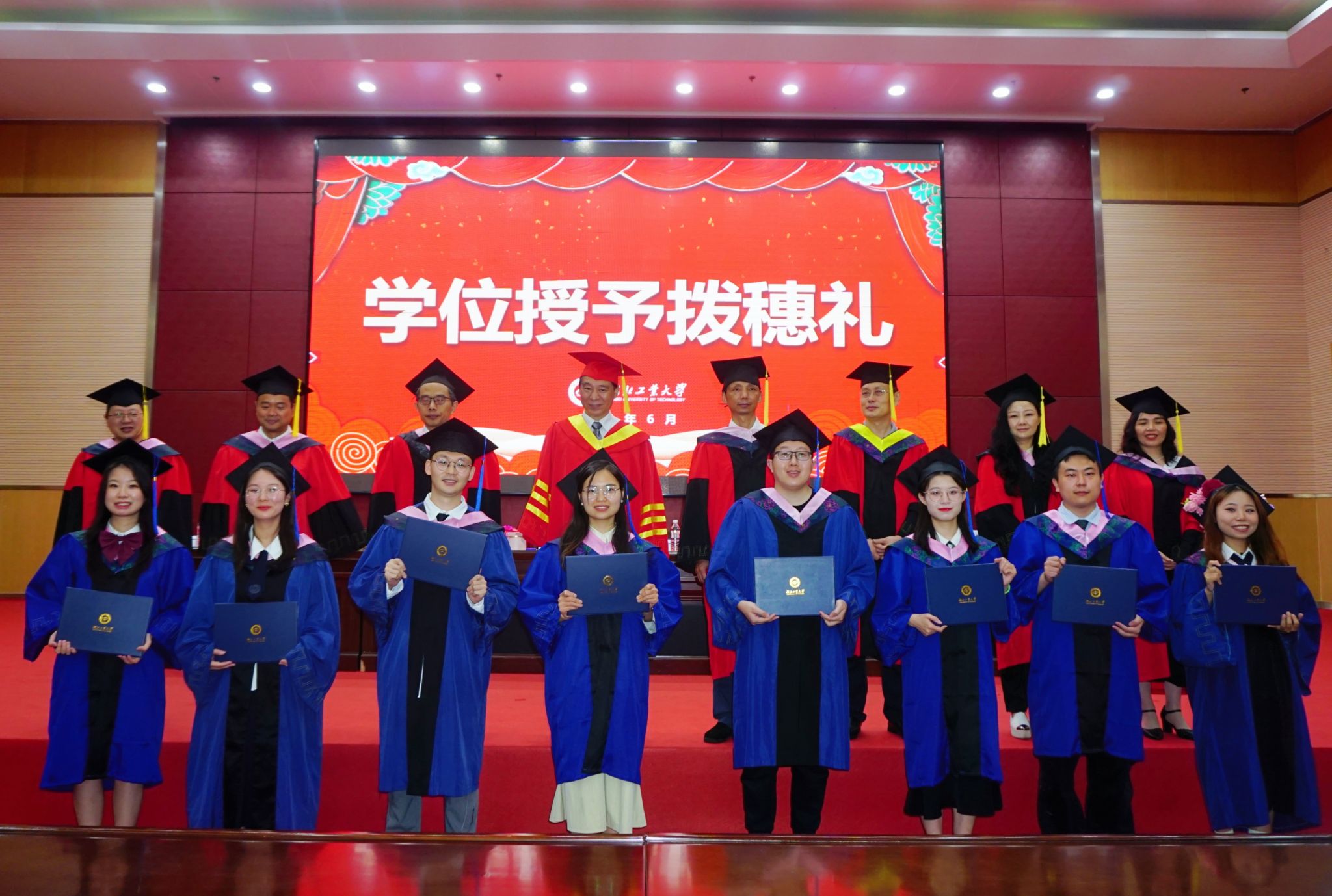 在学位授予仪式环节,王侃及学院教授委员会成员为全体毕业生逐一拨穗、授予学位。