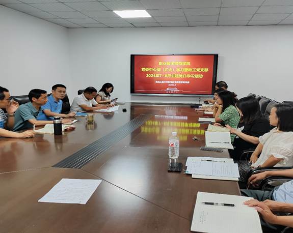 9月5日下午,职业技术师范学院党委举行2024年8月份中心组(扩大)学习暨7-8月教工党支部主题党日活动,学院全体教职工党员参加。