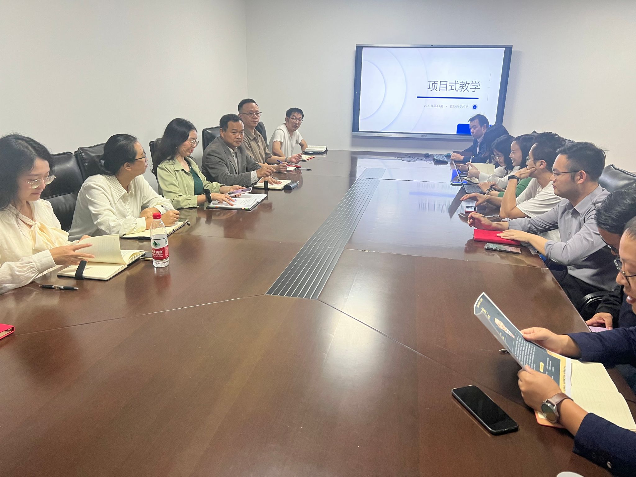 在第二阶段,参与教师围绕项目式教学进行了热烈且深入的讨论。职业技术师范学院的黄旭中老师提出了自己在讲授《教育研究方法》课程时,运用项目式教学方法所遇到的课堂讨论时间与讲授时间方面的困惑。杨红荃老师则提出了在使用项目式讲授方法时,如何提高学生内驱力方面的困惑。外国语学院的郭敏老师以及职业技术师范学院的周维莉老师分别分享了在汉语教育、教育史教学中如何运用项目式学习的困惑。工业设计学院吴崇翔老师分享了自己在《平面设计》课程讲授中使用项目式教学的经验,并详细介绍了如何设计项目、组织学生团队、引导学生探究和合作学习等方面的具体做法。教师们还提出了在实践中遇到的一些问题和挑战,如项目设计难度大、教学时间紧张、学生评价困难等。