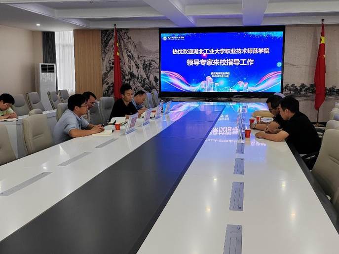 在武汉市黄陂区职业技术学校,校长黄显国等班子成员热情接待了马丹一行。调研组听取了该校情况介绍,介绍了学院基本情况,重点介绍了我院赋能职业学校“双优校”建设所取得的成绩。双方围绕中职“双优校”建设、共建研究生工作站、联合培养职教研究生、共建研究生实习基地和国培教学基地、整校课堂推门听课、暑期校本培训、“优师计划”学生就业等方面进行了深入交流,形成广泛共识并达成初步合作意愿。