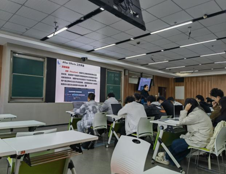 为进一步深化实践类课程教学改革,提升专任教师实践教学水平,搭建教学经验交流平台,12 月 8 日,我院面向全体专任教师开展《现代教育技术》课堂教学观摩活动。本次观摩课程由韦妙老师主讲,以 “实训任务视频后期合成及特效处理” 为核心教学内容,紧扣实践类课程 “重操作、强应用” 核心特质。 韦妙老师深耕《现代教育技术》教学多年,兼具扎实的理论功底与丰富的实操教学经验。课堂上,他立足教学实际需求,先对视频后期合成的核心概念、特效处理的基础原理进行了清晰易懂的讲授,用通俗的语言拆解专业知识点,帮助在场教师快速把握教学重难点。随后,聚焦 AE 软件操作实操环节,韦妙老师通过分步演示、实时讲解的方式,从素材导入、轨道编辑到特效添加、参数调整,每一个操作步骤都细致入微,一边操作一边标注关键技巧,将复杂的软件操作流程直观呈现,让观摩教师清晰掌握实践教学的关键环节与演示方法。