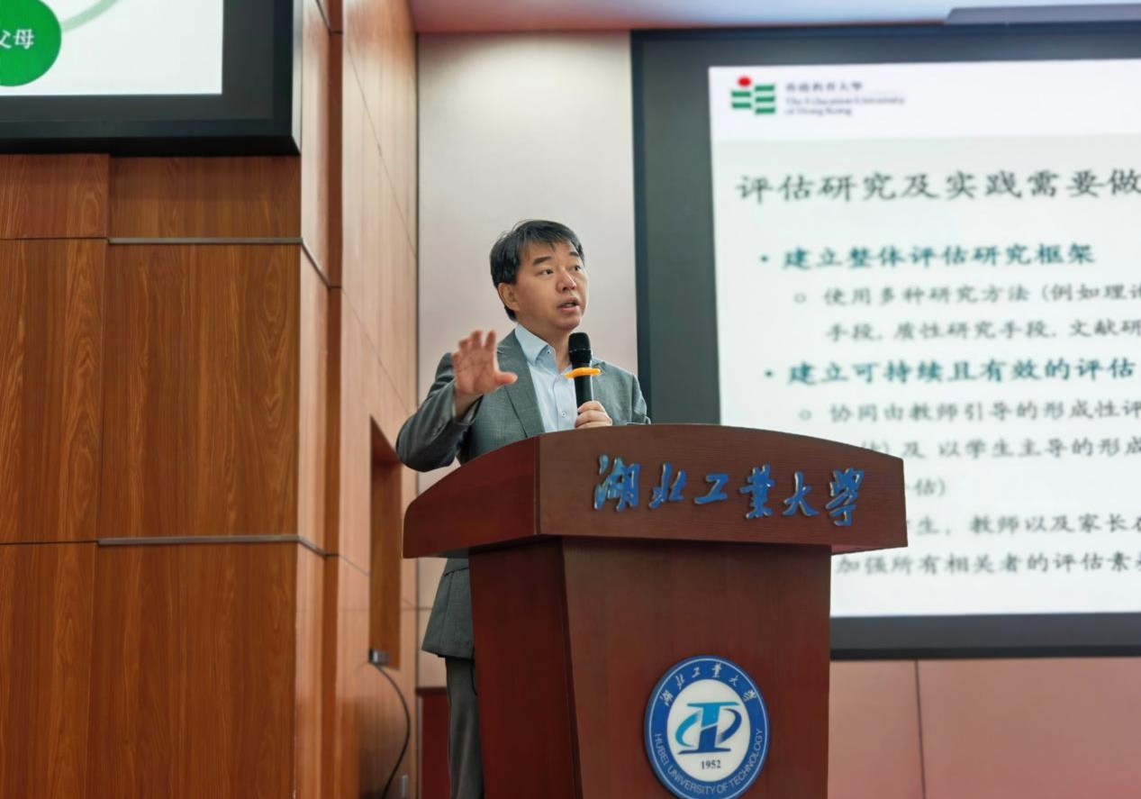 424日上午,湖北工业大学第83期南湖教育讲坛在博学堂举行。香港教育大学晏子教授应邀作题为《以学生为中心的评估驱动学习》的专题讲座。讲座由湖北工业大学职业技术师范学院马丹院长主持,学院教师及研究生200余人到场聆听。晏子教授长期致力于“以学生为中心的自我评估”研究,在理论构建与教育实践方面成果丰硕。本次讲座围绕教育评估理念转型、人工智能背景下的评估机遇与挑战、自适应学习平台建设等议题展开,为师生带来一场兼具理论深度与实践启发的学术报告。