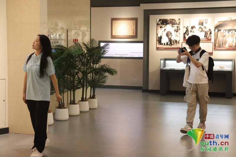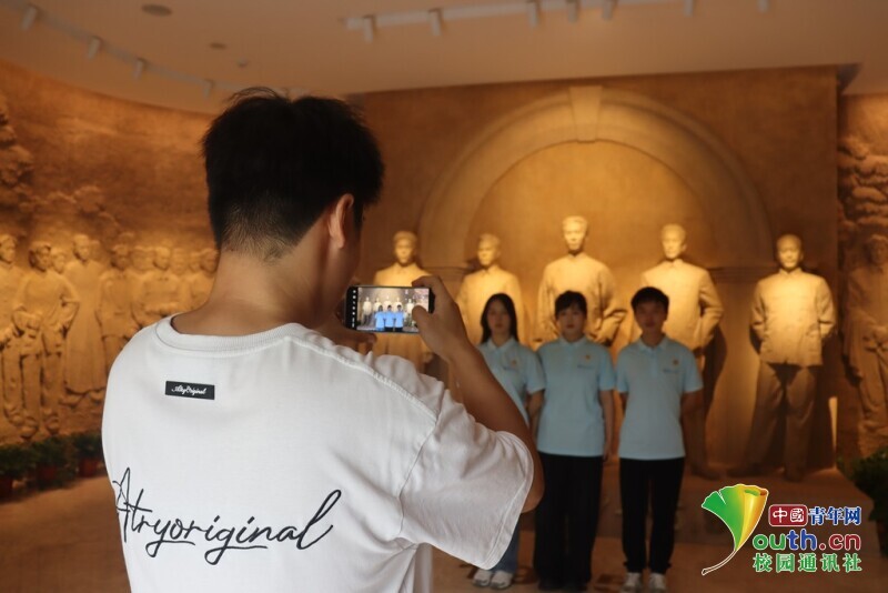 图为服务队成员在红色基地拍摄。 范嘉俊 供图