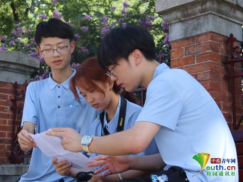 图为服务队成员讨论拍摄脚本细节。方静雯 供图