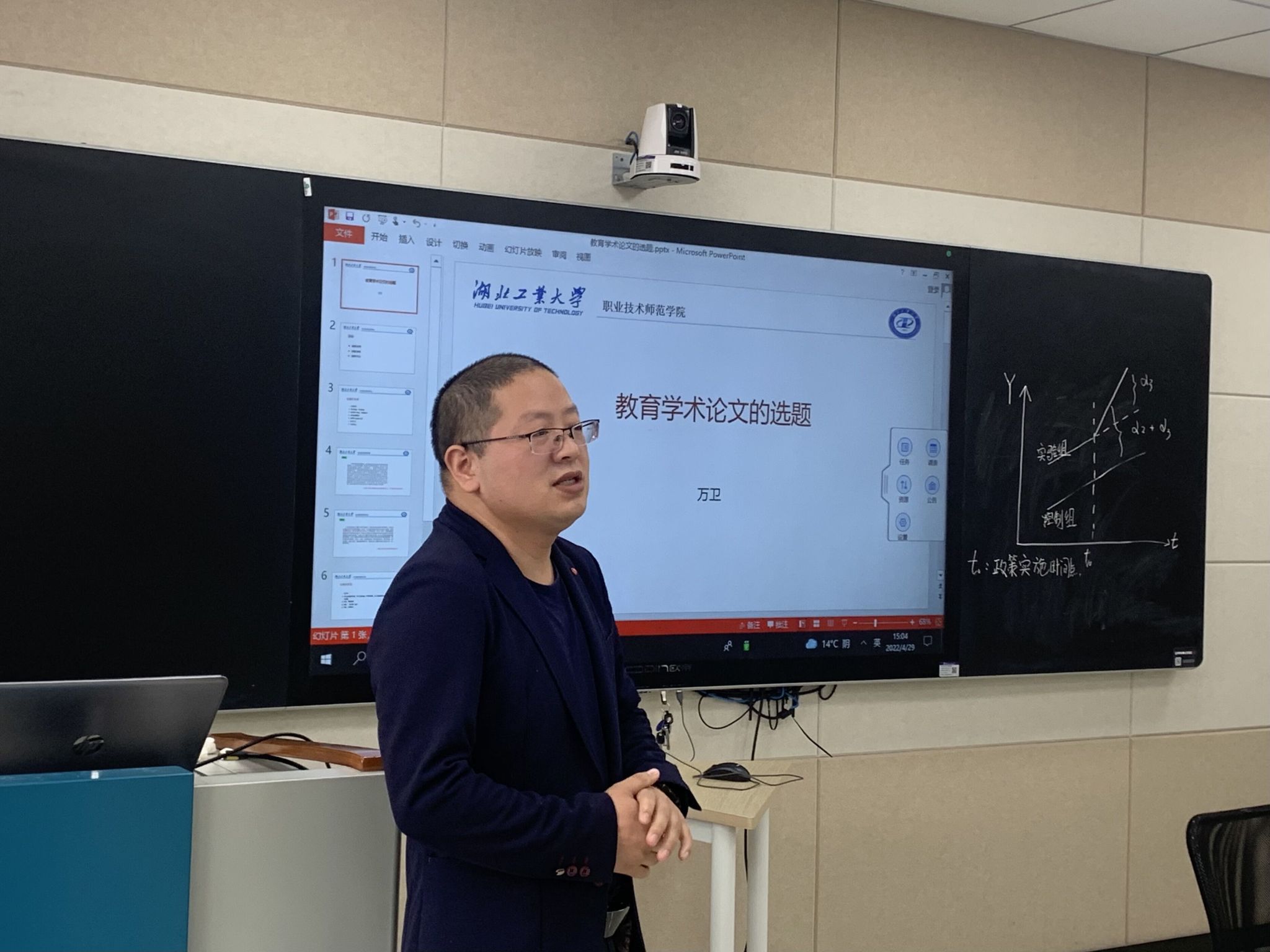 本次沙龙最重要的环节是由职业教育专家万卫副教授为我们作教育学术论文选题专题分享。万老师从学术论文“选题来源、选题原则、选题方法”这三个方面层层递进,并且结合自身选题经验为我们解答了在教育学术论文选题过程中存在的疑惑。