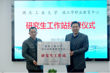 为贯彻党的十九大精神,以习近平同志为核心的党中央对职业教育提出的新思想、新要求和新部署为引领,以推动职业教育高质量发展为宗旨,2021年3月15-16日,湖北工业大学职业技术师范学院分别与枝江市职业教育中心、宜昌市机电工程学校共建研究生工作站授牌仪式顺利举行。