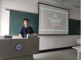 袁坤学长向同学们介绍了“学在日常”的重要性,谈到了要养成好的学习习惯,重视每一科目的学习,争取较高的学分绩点。对于自己学得吃力的学科,要探索合适的学习方法。同时他也鼓励同学们积极地参加各种学科竞赛,如:互联网+、三创赛、挑战杯、大学生英语竞赛、师范生技能竞赛等,不断提升自己的专业能力。