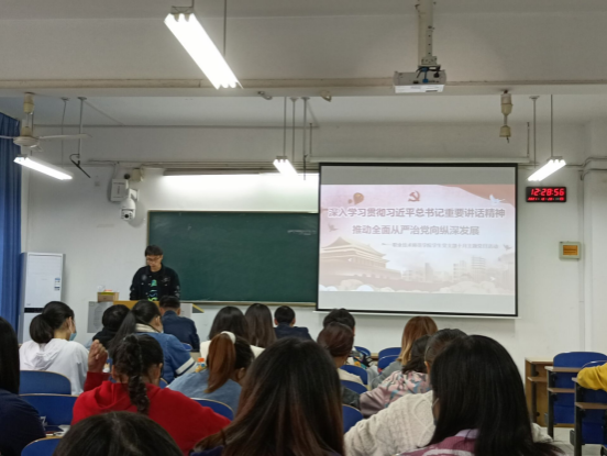 10月28日,为学习贯彻习近平总书记重要讲话精神,推动全面从严治党纵深发展,职业技术师范学院党支部在二教开展十月主题党日活动。活动分为四个环节,分别是:学习习近平总书记在中央人才工作会议上的重要讲话、学习习近平总书记在纪念辛亥革命110周年大会上的讲话、学习习近平总书记重要文章、戴毅斌书记总结讲话。