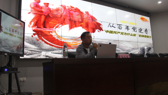 孙文建老师首先对“为什么要在庆祝建党百年这一重要时刻在全党开展党史学习教育?”这一问题进行了讲解:在党史学习教育动员大会上,习近平总书记指出:“今年是中国共产党成立一百周年。在全党开展党史学习教育,是党中央立足党的百年历史新起点、统筹中华民族伟大复兴战略全局和世界百年未有之大变局、为动员全党全国满怀信心投身全面建设社会主义现代化国家而作出的重大决策。”