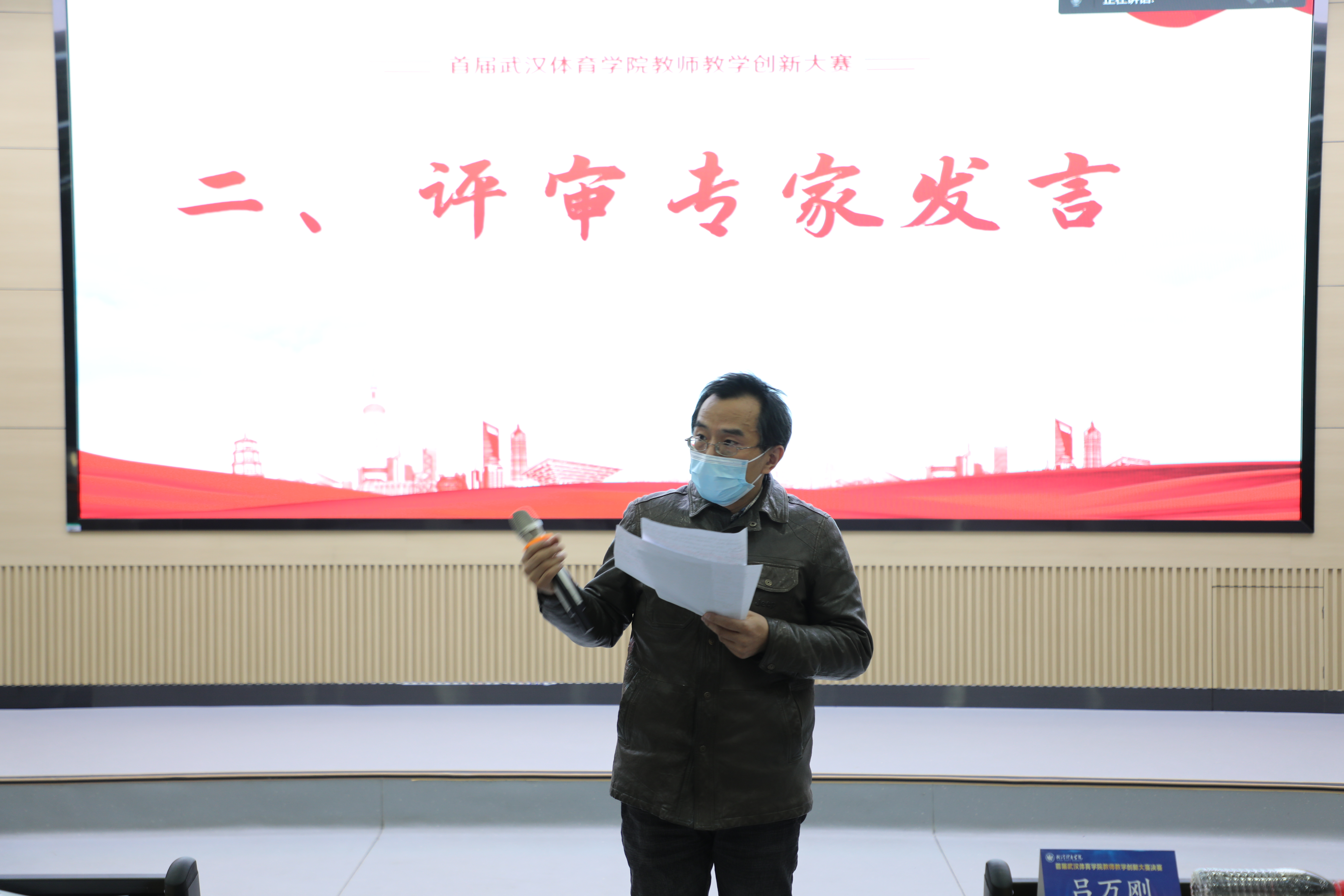 为深入贯彻落实党的二十大精神,深化新时代教师队伍建设改革攻坚行动。12月9日至14日,武汉体育学院举办了首届教师教学创新大赛。武汉体育学院党委书记陈继平,党委副书记、校长吕万刚,党委副书记、副校长张飙,纪委书记、监察专员朱建中,党委常委、副校长王志强、刘彦博、朱磊,党委常委、组织部部长潘高峰到现场观摩指导。名师工作室首席专家马丹教授受邀作为此次大赛的评审专家组组长对参赛教师进行点评和指导。