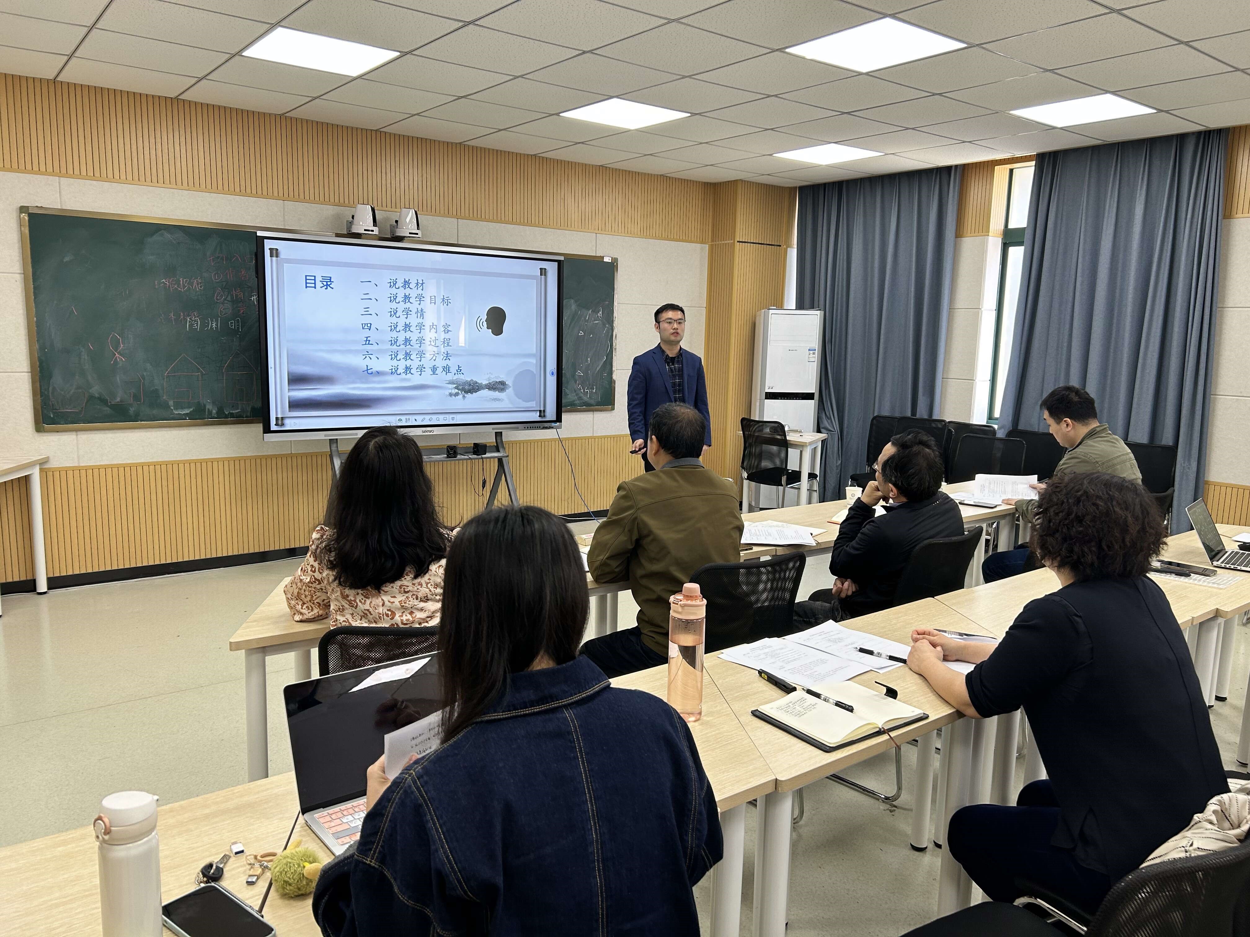培训交流会上,我院王薇老师、汪旭老师和杨秋月老师分别结合《微格教学》《教育学经典阅读》《师德教育与班主任工作》三门课程,从课程简介、教材与学情分析、教学目标、教学过程与方法、教学重难点、教学评价与反思等方面进行了现场无学生试讲。专家组成员从职业道德、语言表达与思维、板书、仪表仪态、教学目标的确定、教学重难点分析和教学设计等方面对三位新进教师进行了个性化地指导,并提出了专业的改进建议。