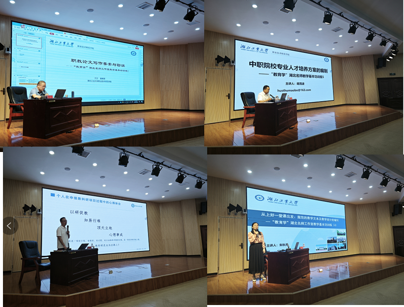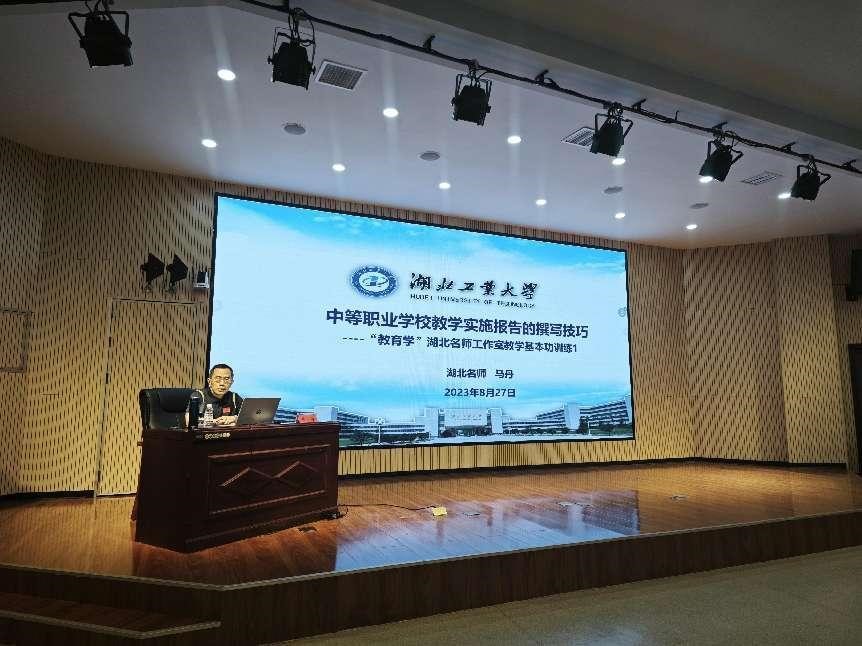 为积极践行湖北工业大学职师学院深耕职业教育领域服务地方职教发展的社会责任使命,进一步彰显湖北工业大学“教育学”名师工作室团队力量,2023年8月27-30日,名师团队前往恩施市宣恩县中等职业技术学校为全体专任教师进行了针对性的校本培训讲座。本次培训团队以马丹教授为带头人,胡茂波教授以及万卫、曹靖、朱秋月等三位副教授参与。本次湖北工业大学为宣恩职校量身定做的“校本培训方案”经过调研论证,并兼顾学校发展诉求和现存短板,从教师教学基本功抓起,以“中职院校人才培养方案的制订、教学文本规范和教学设计、教学实施报告撰写、职业院校科研课题申报、中职教师教研论文写作”五个专题展开。