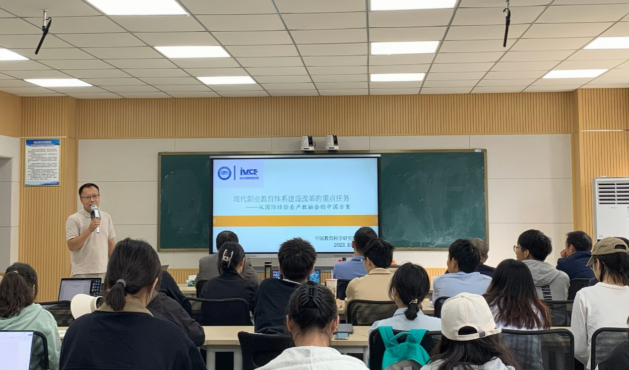 张浩教授围绕我国职业教育体系建设改革的顶层设计、产教融合的难点、德国的历史经验、英国的现代改革、中国之路五大板块进行论述。在顶层设计方面,张浩教授向师生们展示了我国近年来有关职业教育的重要政策;在产教融合难点方面,从“谁要付出”“付出多少”进行了深入分析;在德国经验上,细致阐述了德国学徒制的演进历程,同时对德国的历史经验也作出了系统性总结;并对英国现代职业教育改革中雇主优先政策进行了深入剖析。最后张浩教授基于上述多维因素提出了我国职业教育体系建设改革的中国之路。