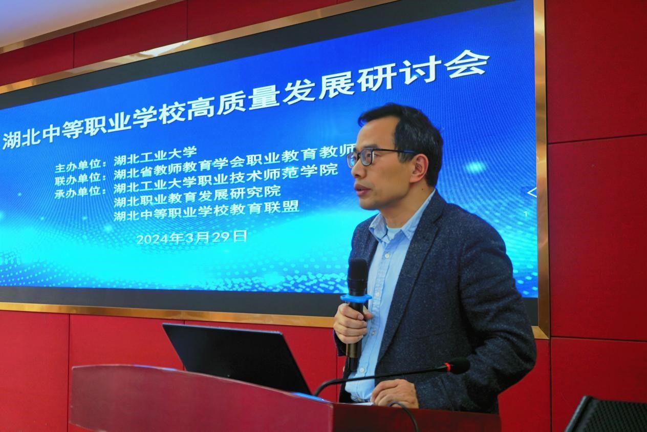 会议初始,湖北工业大学职业技术师范学院党委书记戴毅斌致辞欢迎专家、来宾的到来。戴书记指出,湖工大职师学院与职教发展有着深厚渊源,在国内较早地开展了职业教育,举办此次研讨会是对学校、学院办学成果的鼓励和认可。他希望,能够以本次研讨会为契机,致力为湖北职教发展贡献更多力量。