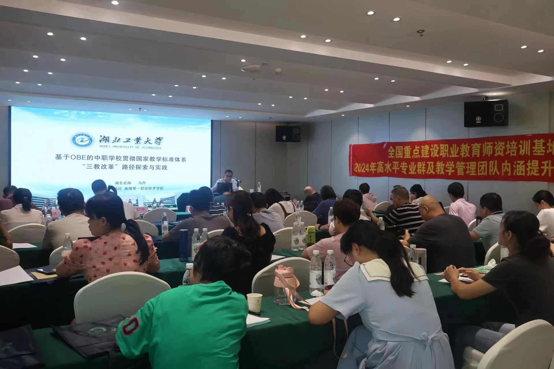 7月5日上午,湖北名师、湖北工业大学职业技术师范学院院长马丹教授为高水平专业群及教学管理团队内涵提升研修培训班南靖第一职业技术学校学员作题为“基于OBE的中职学校贯彻国家教学标准体系‘三教改革’路径探索与实践”专题培训。会上马丹教授深入分析了OBE理念在中职教育中的应用,并结合实际案例,探讨了如何通过教师、教材和教法的改革,提高教育质量和学生的实际能力。