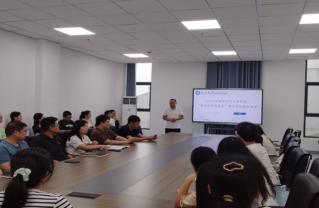 随后,胡茂波教授为计划在职提升学历的老师进行了相关政策的解读,介绍了湖北工业大学职业技术师范学院同等学力教育硕士培养政策,包括研究生招生政策、报考模式、培养方式以及在职提升学历的优势和机遇,并现场回答了老师们的疑问,鼓励天门职院老师积极抓住机会,通过学历提升实现自身的教育教学水平和能力的提高。