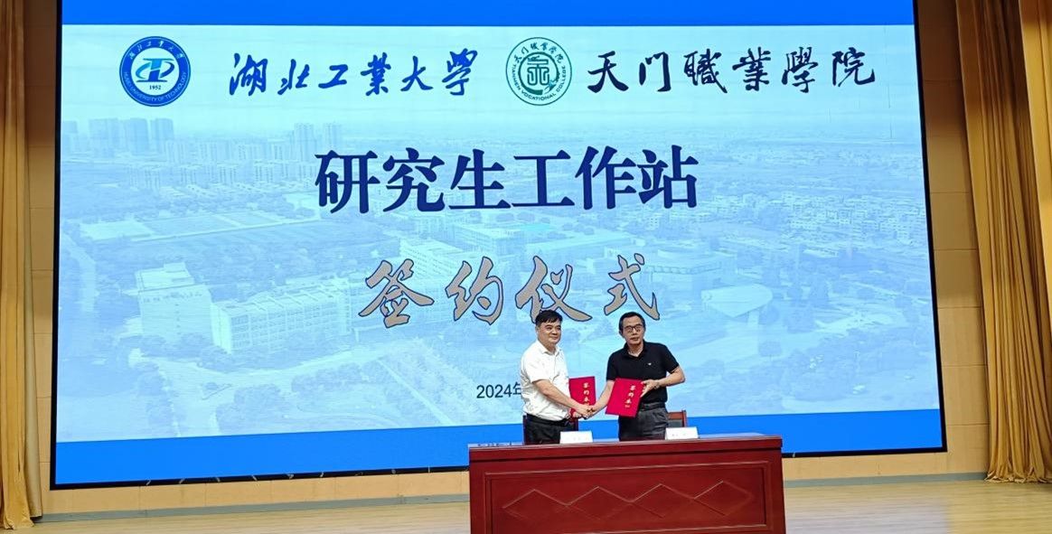 9月12日下午,湖北工业大学职业技术师范学院在天门职业学院学术报告厅同天门职院举行湖北工业大学研究生工作站签约仪式。湖北省教育学名师工作室首席专家、职业技术师范学院院长马丹教授和天门职院副校长阳军代表双方签约,工作室骨干成员、职业技术师范学院副院长胡茂波及学院教师参加签约仪式。仪式由天门职院教务处处长田刚主持。