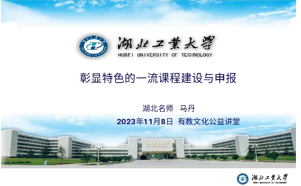 课程是人才培养的核心要素,课程质量直接决定人才培养质量。为深化教育教学改革,加强一流课程建设,提升数字化课程建设与服务能力。2023年11月8日,教育学名师工作室专家马丹教授受武汉有教文化传播有限公司邀请开展线上文化公益讲座,此次讲座共有300余人参会。